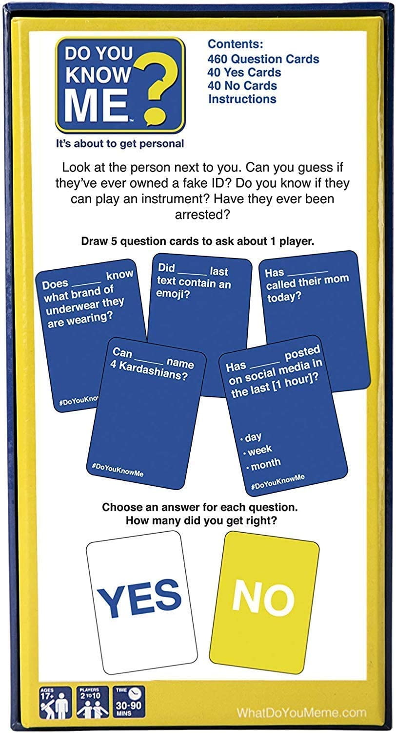 Do You Know Me Adult Party Game By What Do You Meme Card Game That Puts You And Your Friends In The Hot Seat Nbsp Ages 17 Walmart Com